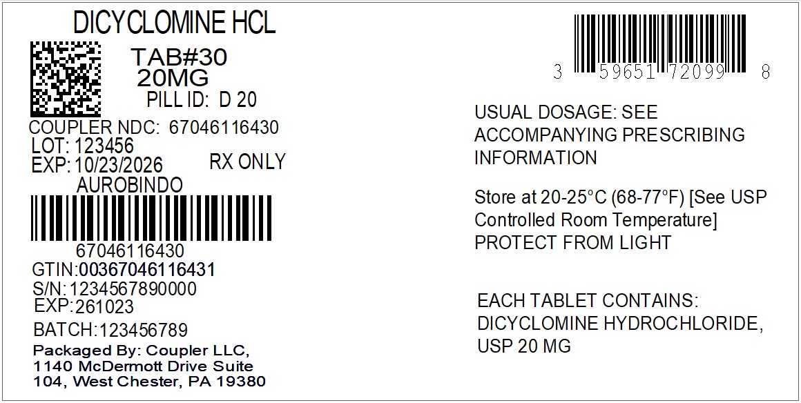 Dicyclomine hydrochloride tablets, USP for oral administration contain 20 mg of dicyclomine hydrochloride, USP. In addition each tablet contains the following inactive ingredients: anhydrous lactose, colloidal silicon dioxide, FD&C Blue No. 1 Aluminum Lake, magnesium stearate, microcrystalline cellulose, pregelatinized starch (corn) and sodium lauryl sulfate.