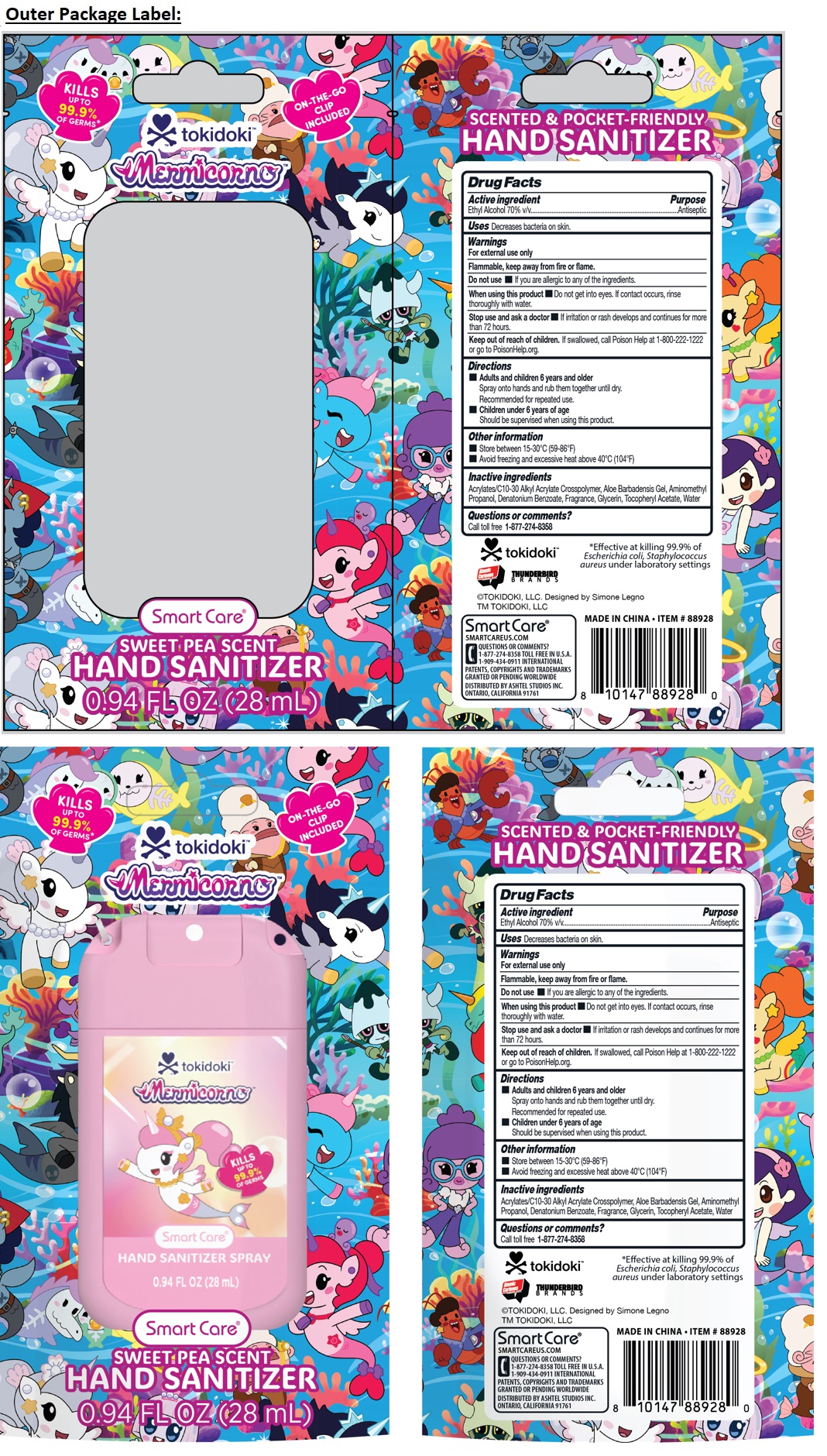Smart Care tokidoki Mermicorno SWEET PEA SCENT HAND SANITIZER by is a Otc medication manufactured, distributed, or labeled by Ashtel Studios Inc.. Drug facts, warnings, and ingredients follow.