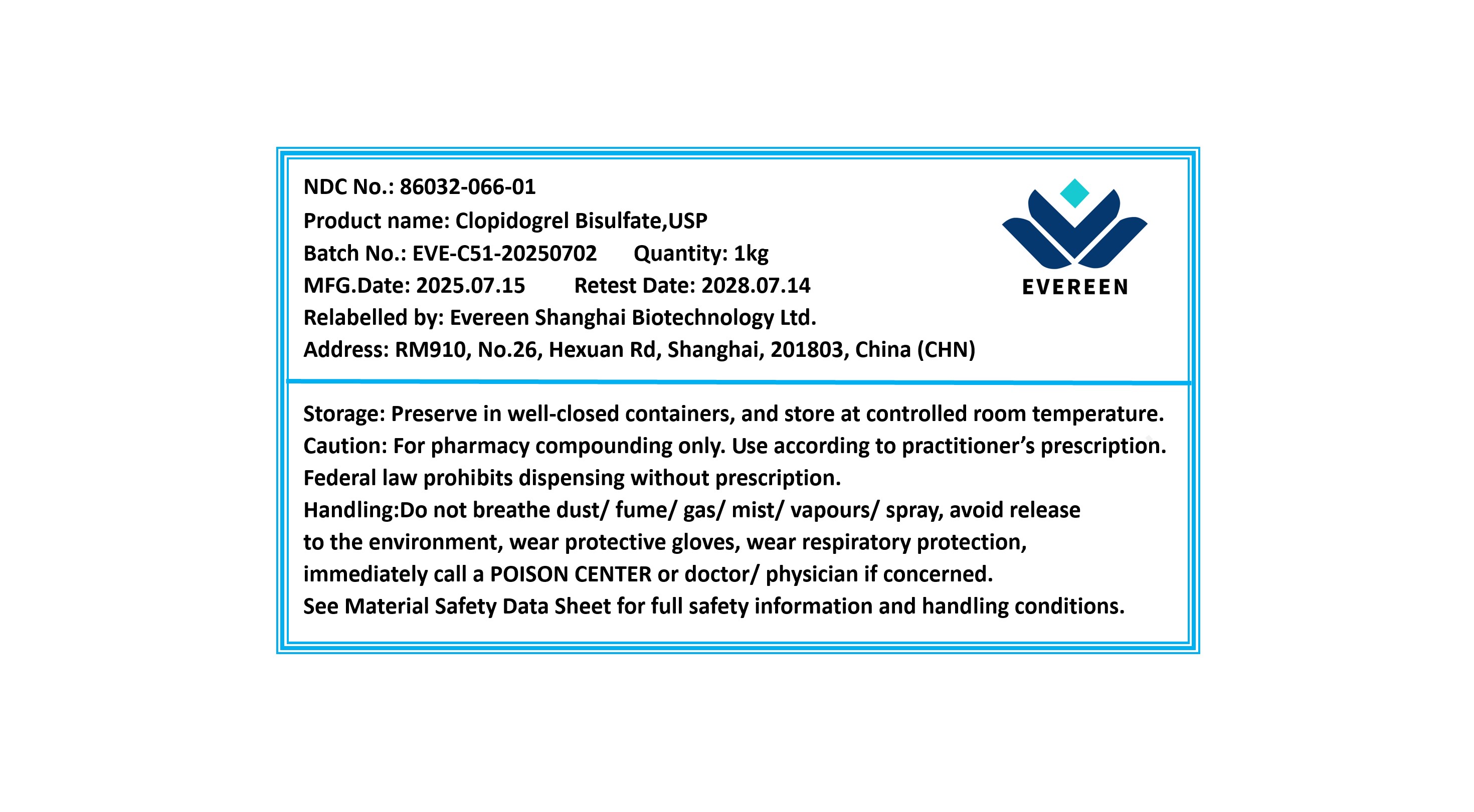 Clopidogrel Bisulfate by is a Other medication manufactured, distributed, or labeled by Evereen Shanghai Biotechnology Ltd., Shandong Lixin Pharmaceutical Co., Ltd.. Drug facts, warnings, and ingredients follow.