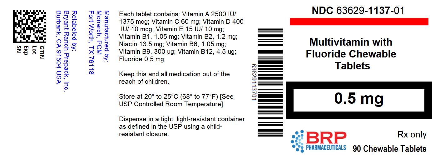 Multivitamin with Fluoride 0.5 mg Chewable Tabletssupply significant amounts of Vitamins A, C, D, E, thiamine, riboflavin, niacin, vitamin B6, vitamin B12, and folate to supplement the diet, and to help assure that nutritional deficiencies of these vitamins will not develop.