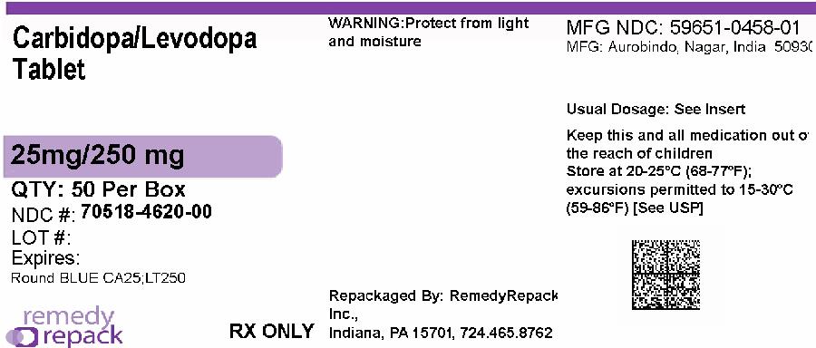 Carbidopa and levodopa tablets USP, 25 mg/250 mg containing 25 mg of carbidopa USP and 250 mg of levodopa USP.