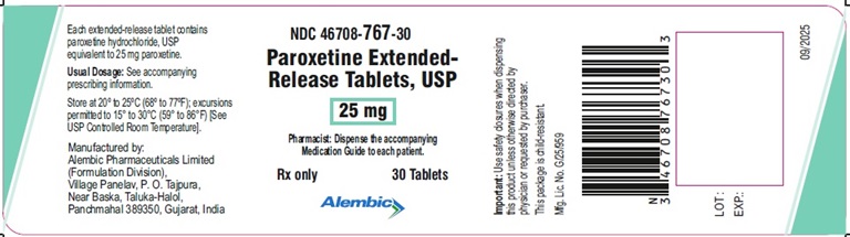 Active ingredient: paroxetine hydrochloride Inactive ingredients: colloidal silicon dioxide, glyceryl dibehenate, hypromellose, lactose monohydrate, magnesium stearate, methacrylic acid copolymer, povidone K-30, talc and triethyl citrate. The film-coating material contains hypromellose, polyethylene glycol 400, polyethylene glycol 6000 and titanium dioxide. Additionally, 12.5 mg tablets contain D&C Yellow No. 10 Lake, FD&C Yellow No. 6 Aluminium Lake and polysorbate 80, 25 mg tablets contain D&C Red No. 30 Lake and polysorbate 80 and 37.5 mg tablets contain FD&C Blue No. 2 Aluminium Lake and talc. Manufactured by: Alembic Pharmaceuticals Limited (Formulation Division), Village Panelav, P. O. Tajpura, Near Baska, Taluka-Halol, Panchmahal 389350, Gujarat, India. |