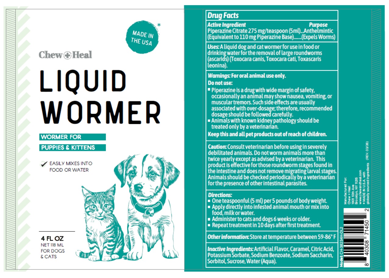 Chew plus Heal Liquid WORMER by is a Animal medication manufactured, distributed, or labeled by Click Industries LLC. Drug facts, warnings, and ingredients follow.