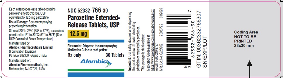 Active ingredient: paroxetine hydrochloride Inactive ingredients: colloidal silicon dioxide, glyceryl dibehenate, hypromellose, lactose monohydrate, magnesium stearate, methacrylic acid copolymer, povidone K-30, talc and triethyl citrate. The film-coating material contains hypromellose, polyethylene glycol 400, polyethylene glycol 6000 and titanium dioxide. Additionally, 12.5 mg tablets contain D&C Yellow No. 10 Lake, FD&C Yellow No. 6 Aluminium Lake and polysorbate 80, 25 mg tablets contain D&C Red No. 30 Lake and polysorbate 80 and 37.5 mg tablets contain FD&C Blue No. 2 Aluminium Lake and talc. Manufactured by: Alembic Pharmaceuticals Limited (Formulation Division), Panelav 389350, Gujarat, India Manufactured for: Alembic Pharmaceuticals, Inc. Bedminster, NJ 07921, USA For more information about paroxetine extended-release tablets call Alembic Pharmaceuticals Limited at 1-866-210-9797 |