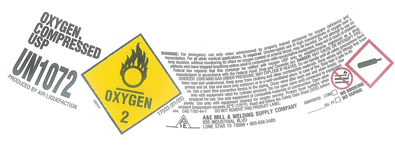 oxygen by is a Animal medication manufactured, distributed, or labeled by A & E Mill & Welding Supply Company. Drug facts, warnings, and ingredients follow.