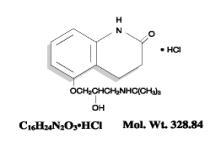 The chemical name for carteolol hydrochloride is (±)–5–[3–[(1,1–dimethylethyl) amino]–2 hydroxypropoxy]–3, 4–dihydro–2(1H)–quinolinone monohydrochloride. The structural formula is as follows: