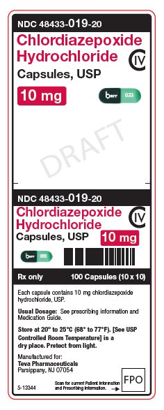 Chlordiazepoxide Hydrochloride Capsules USP, 10 mg are available as a two-piece hard gelatin capsule with a black opaque cap and a green opaque body filled with white powder, imprinted in white ink “stylized barr” 033. They are available as follows: