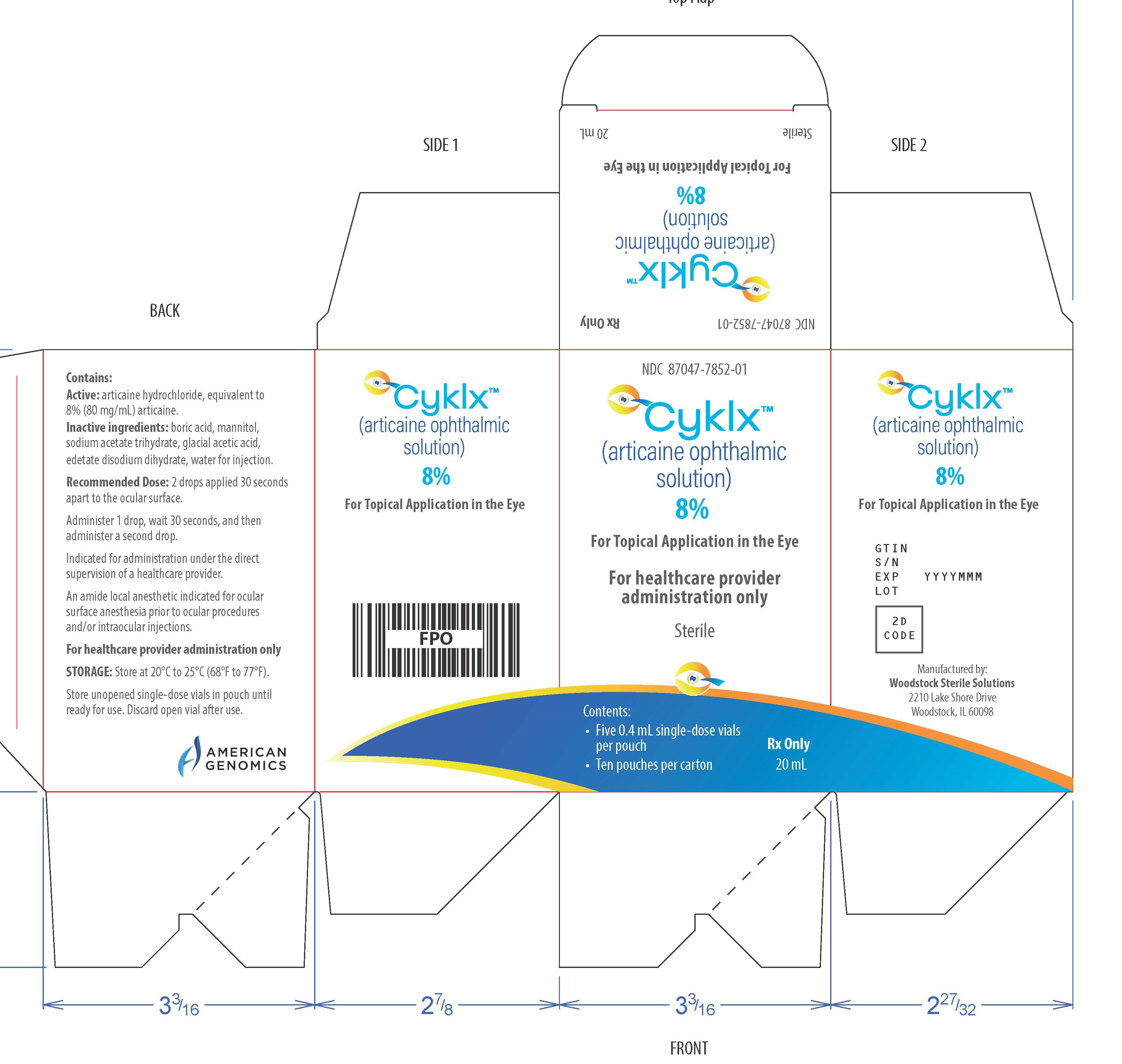 CYKLX (articaine ophthalmic solution) 8% contains articaine, an amide local anesthetic. CYKLX is an aseptically prepared, sterile, clear and colorless solution for topical ophthalmic use with a pH range of 4.5- 5.0.
