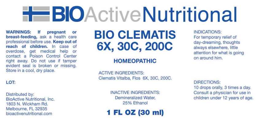 BIO CLEMATIS by is a Homeopathic medication manufactured, distributed, or labeled by BioActive Nutritional, Inc., Apotheca Company. Drug facts, warnings, and ingredients follow.