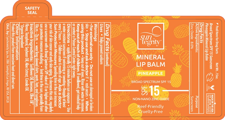 Mineral Lip Balm by is a Otc medication manufactured, distributed, or labeled by Synchronicity Spa, Inc. DBA Suntegrity. Drug facts, warnings, and ingredients follow.