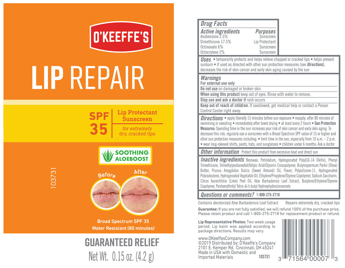 OKeeffes Lip Repair by is a Otc medication manufactured, distributed, or labeled by The Gorilla Glue Company/O'Keeffe's Company. Drug facts, warnings, and ingredients follow.