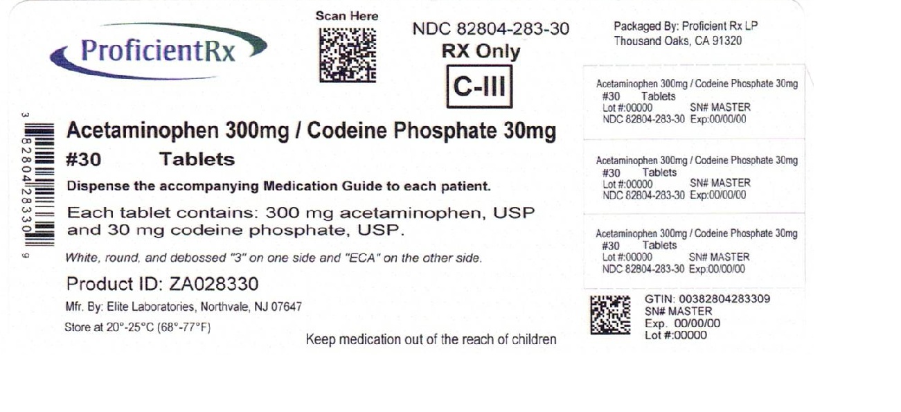 Acetaminophen and Codeine Phosphate Tablets, USP, 300 mg/30 mg bottle of 30 tablets – NDC: 82804-283-30