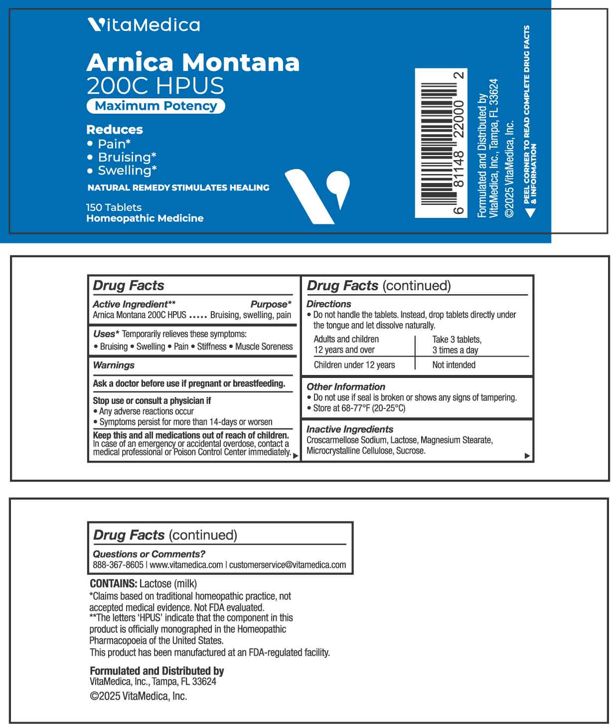 Arnica Montana 200C HPUS by is a Homeopathic medication manufactured, distributed, or labeled by VITAMEDICA, INC., Apotheca Company. Drug facts, warnings, and ingredients follow.