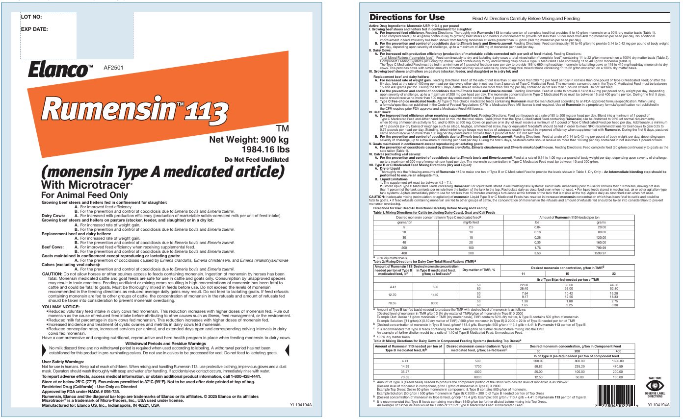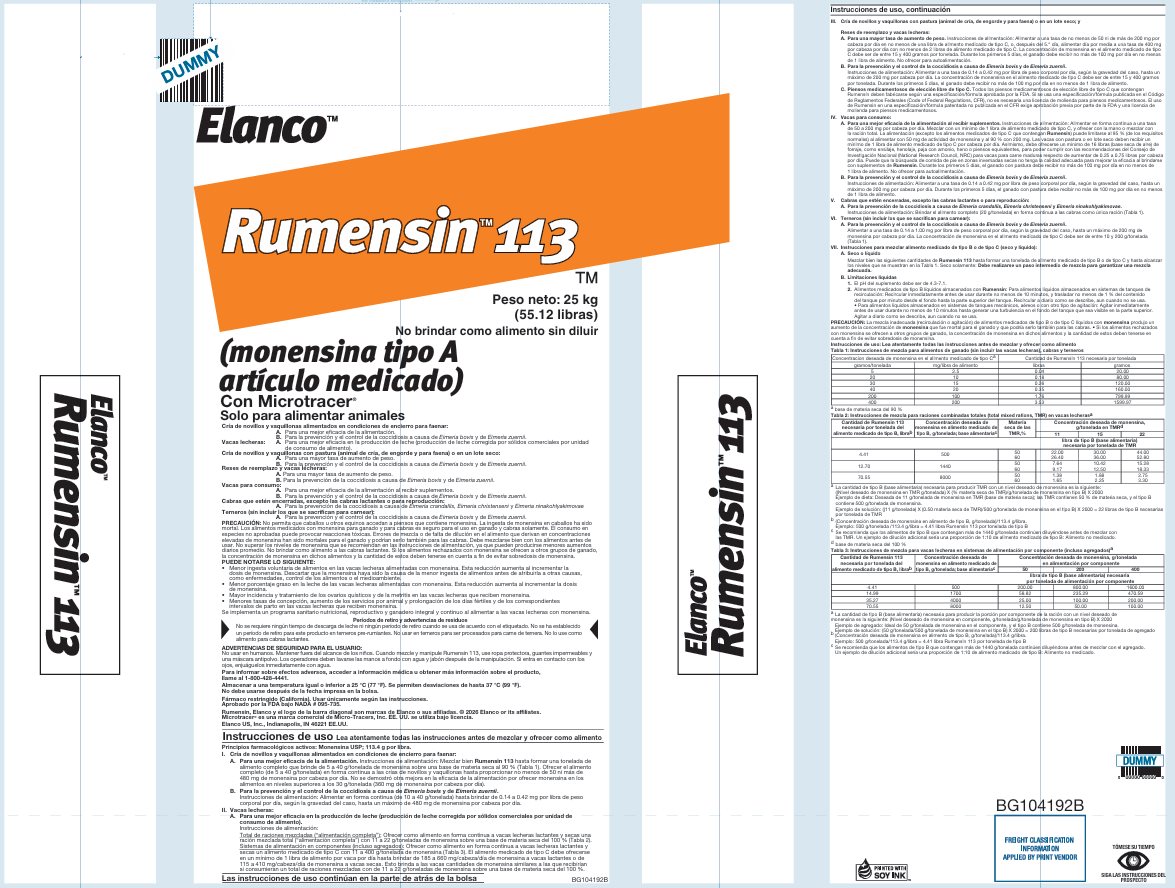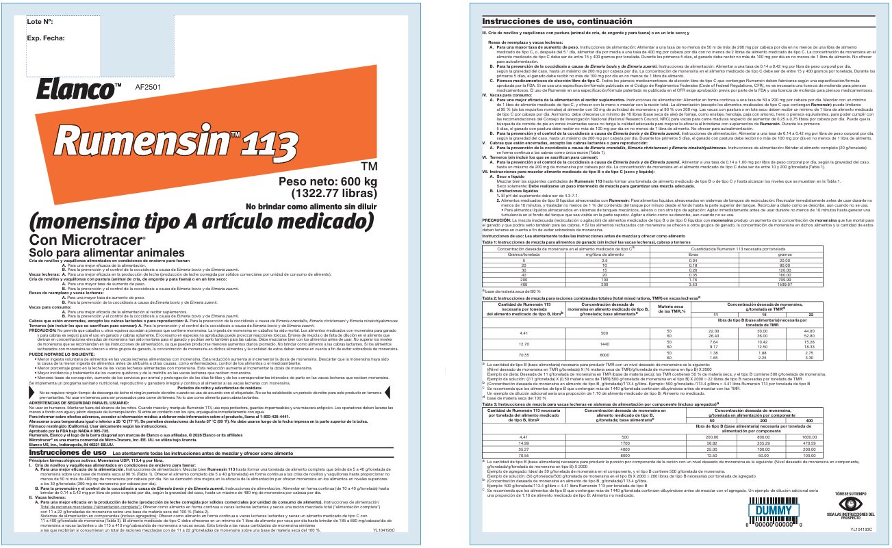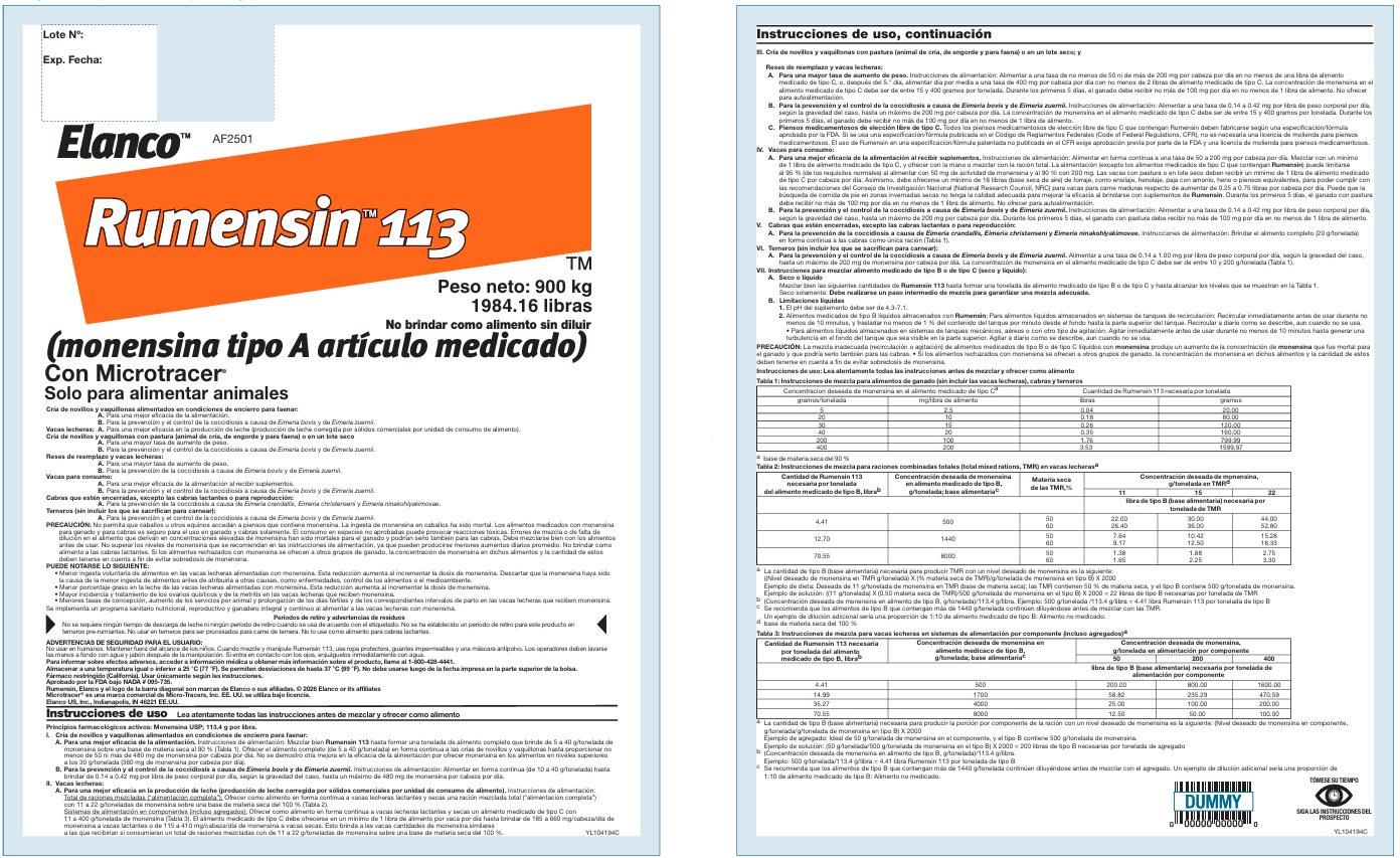Active Drug Ingredients: Monensin USP, 113.4 g per pound.