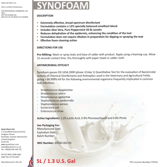 Synofoam by is a Animal medication manufactured, distributed, or labeled by Quat-Chem Ltd.. Drug facts, warnings, and ingredients follow.
