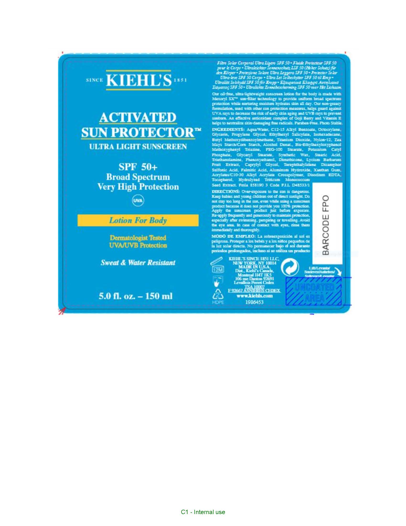 Kiehls Activated Sun Protector Ultra Light Sunscreen SPF 50 for Body Sweat and Water Resistant by is a Otc medication manufactured, distributed, or labeled by L'Oreal USA Products Inc, L'OREAL USA, INC.. Drug facts, warnings, and ingredients follow.