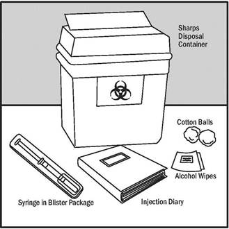 Step 1: Gather the supplies you will need to inject Glatiramer Acetate Injection. See Figure A.