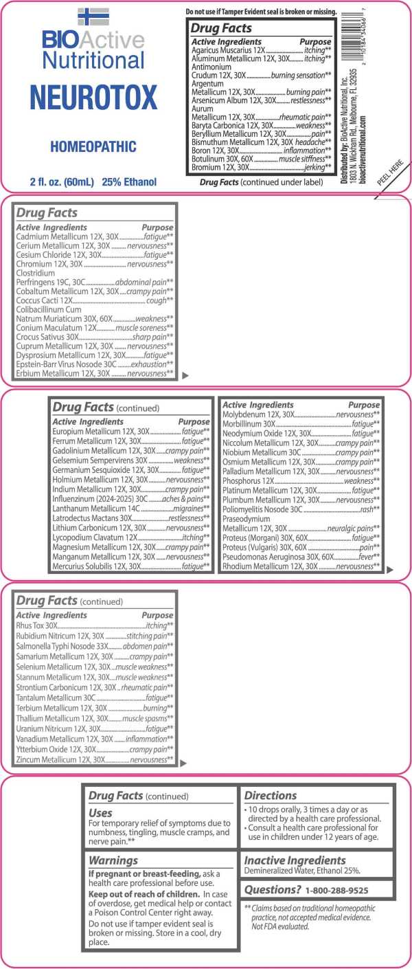 Neurotox by is a Homeopathic medication manufactured, distributed, or labeled by BioActive Nutritional, Inc., Apotheca Company. Drug facts, warnings, and ingredients follow.