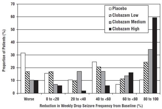 Figure 2. Drop Seizure Response by Category for Clobazam and Placebo (Study 1)