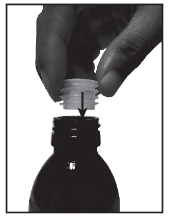 Step 3. Uncap the bottle and firmly insert the bottle adapter into the bottle until the adapter top is even with the bottle top. See Figure C
