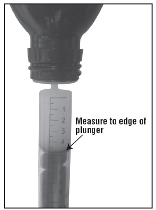 Measure the mLs of medicine using the edge of the violet plunger. See Figure G