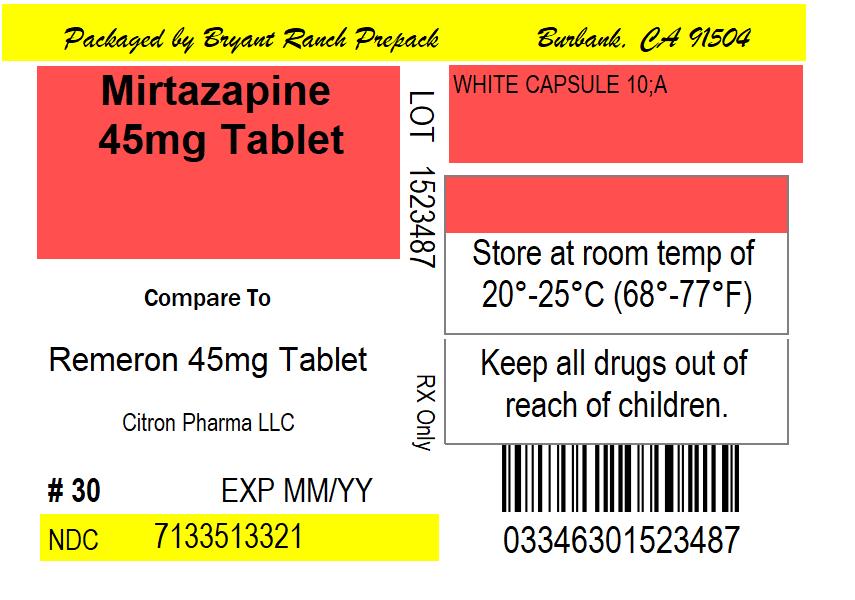 Mirtazapine by is a Prescription medication manufactured, distributed, or labeled by Bryant Ranch Prepack. Drug facts, warnings, and ingredients follow.