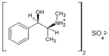 Ephedrine is an alpha- and beta-adrenergic agonist and a norepinephrine-releasing agent. Ephedrine Sulfate Injection, USP is a clear, colorless, sterile solution for intravenous injection. It must be diluted before intravenous administration. The chemical name of ephedrine sulfate is (1 R, 2 S)-(-)-2-Methylamino-1-phenyl-1-propanol sulfate, and the molecular weight is 428.5 g/mol. Its structural formula is depicted below: