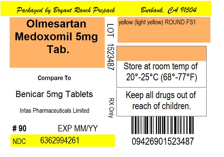 olmesartan medoxomil by is a Prescription medication manufactured, distributed, or labeled by Bryant Ranch Prepack. Drug facts, warnings, and ingredients follow.