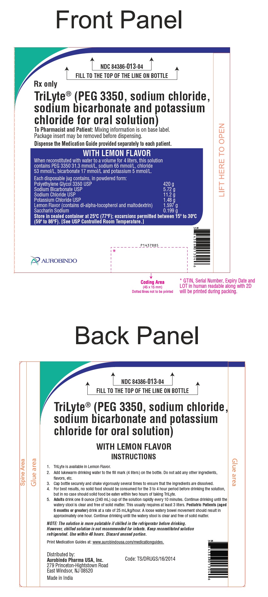 The 4-liter reconstituted TRILYTE solution contains: 420 grams of polyethylene glycol (PEG) 3350, 5.72 grams of sodium bicarbonate, 11.2 grams of sodium chloride, 1.48 grams of potassium chloride, lemon flavor (contains dl-alpha-tocopherol and maltodextrin) 1.597 g and saccharin sodium 0.199 g.