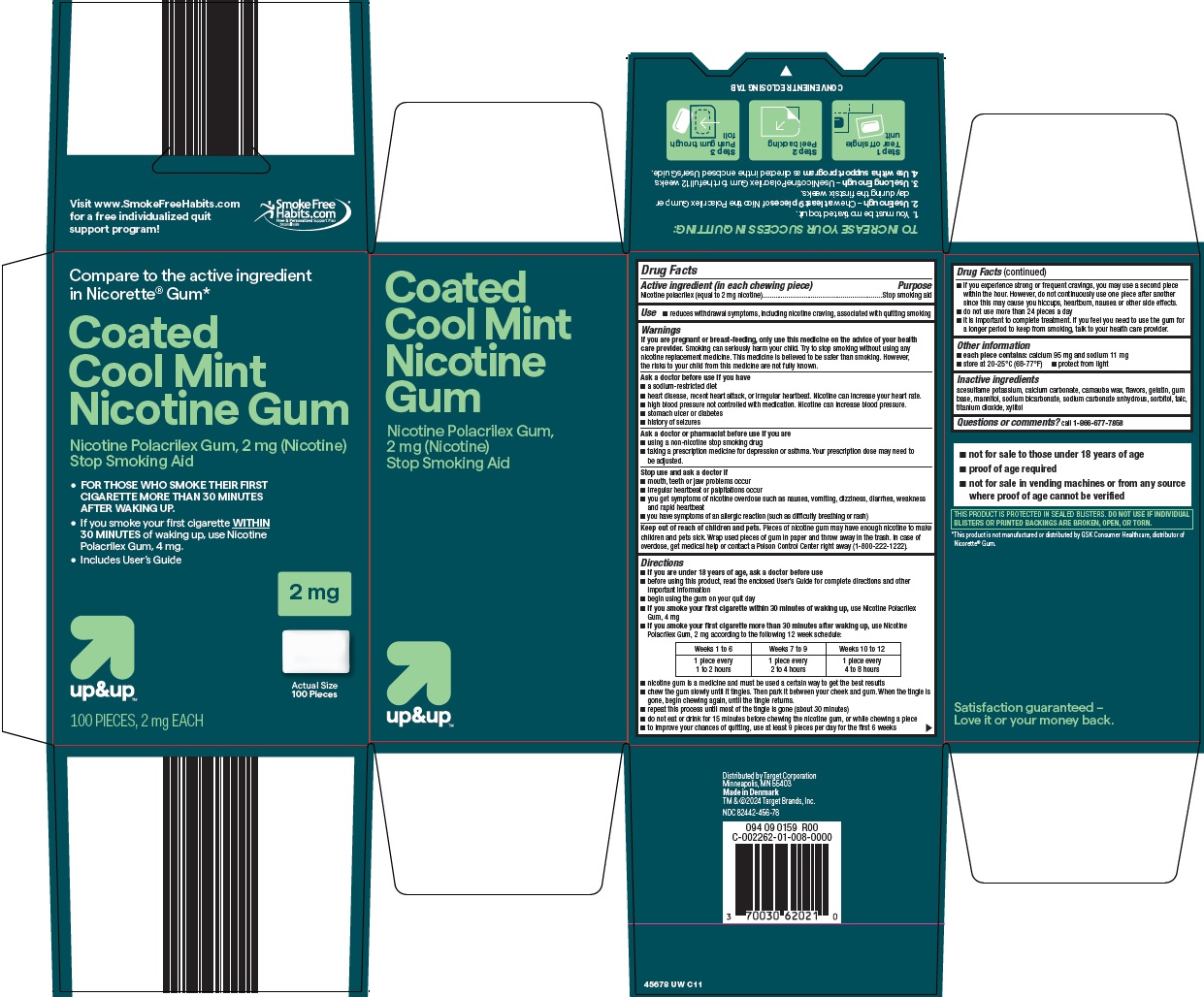 up and up coated cool mint nicotine by is a Otc medication manufactured, distributed, or labeled by Target Corporation. Drug facts, warnings, and ingredients follow.