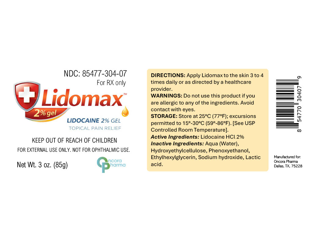 Lidomax™ (Lidocaine HCl 2%) is supplied as a clear topical gel in a 3 oz (85 g) tube. NDC: 85477-304-07