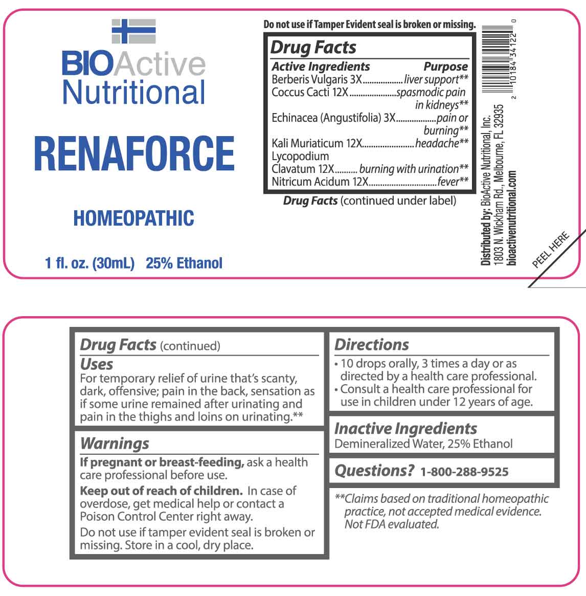 RENAFORCE by is a Homeopathic medication manufactured, distributed, or labeled by BioActive Nutritional, Inc., Apotheca Company. Drug facts, warnings, and ingredients follow.