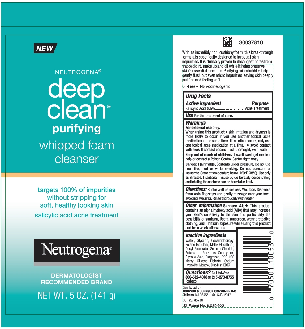 Neutrogena deep clean purifying whipped foam cleanser by is a Otc medication manufactured, distributed, or labeled by Johnson & Johnson Consumer Inc.. Drug facts, warnings, and ingredients follow.