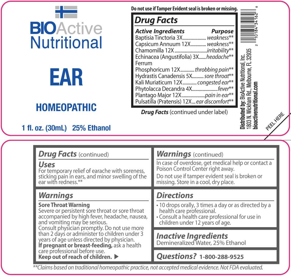 Ear by is a Homeopathic medication manufactured, distributed, or labeled by BioActive Nutritional, Inc., Apotheca Company. Drug facts, warnings, and ingredients follow.