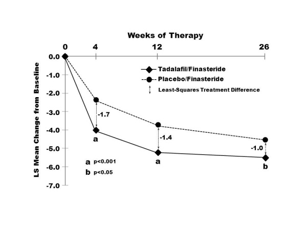 If tadalafil tablets are used with finasteride to initiate BPH treatment, such use is recommended for up to 26 weeks because the incremental benefit of tadalafil decreases from 4 weeks until 26 weeks, and the incremental benefit of tadalafil beyond 26 weeks is unknown [see Clinical Studies ( 14.3)] .