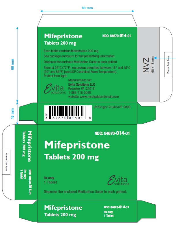 Advise the patient to read the FDA-approved patient labeling (Medication Guide), included with each package of Mifepristone Tablets, 200 mg. Additional copies of the Medication Guide are available by contacting Evita Solutions LLC at 1-866-718-0098 or www.medicalabortionpill.com