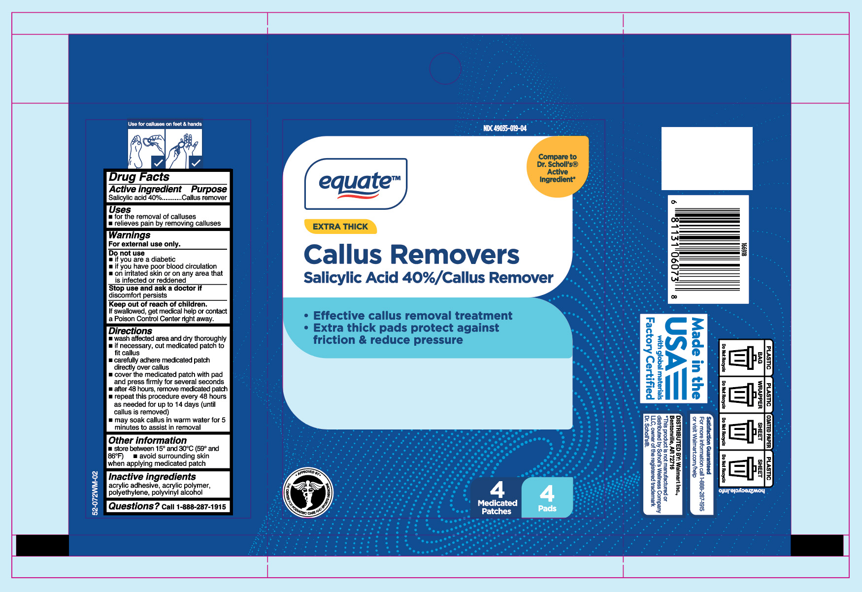 Extra Thick Callus Removers by is a Otc medication manufactured, distributed, or labeled by Wal-Mart Stores, Inc.. Drug facts, warnings, and ingredients follow.