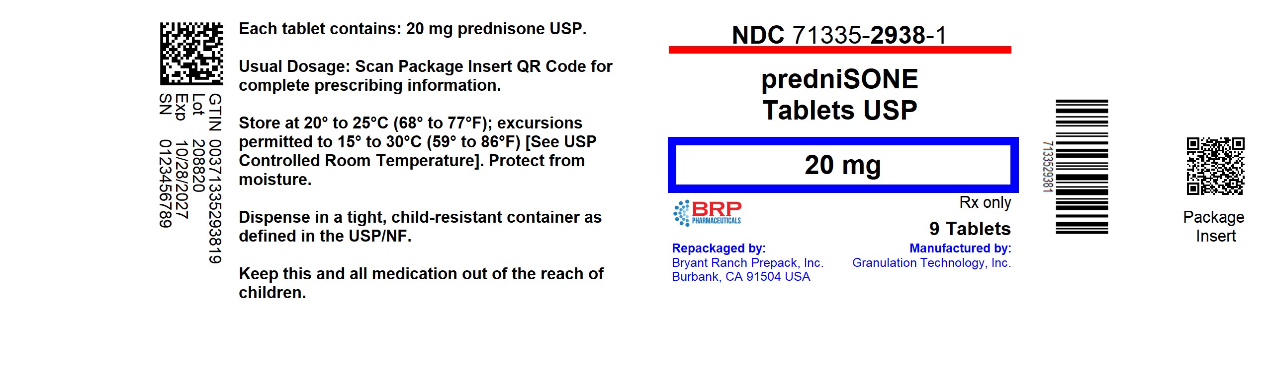 | Bryant Ranch Prepack | 171714327 | REPACK(71335-2938) , RELABEL(71335-2938) | |