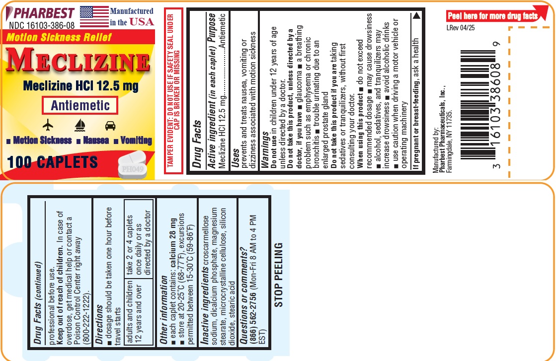| Pharbest Pharmaceuticals, Inc. | 557054835 | manufacture(16103-386) , pack(16103-386) , analysis(16103-386) | |
