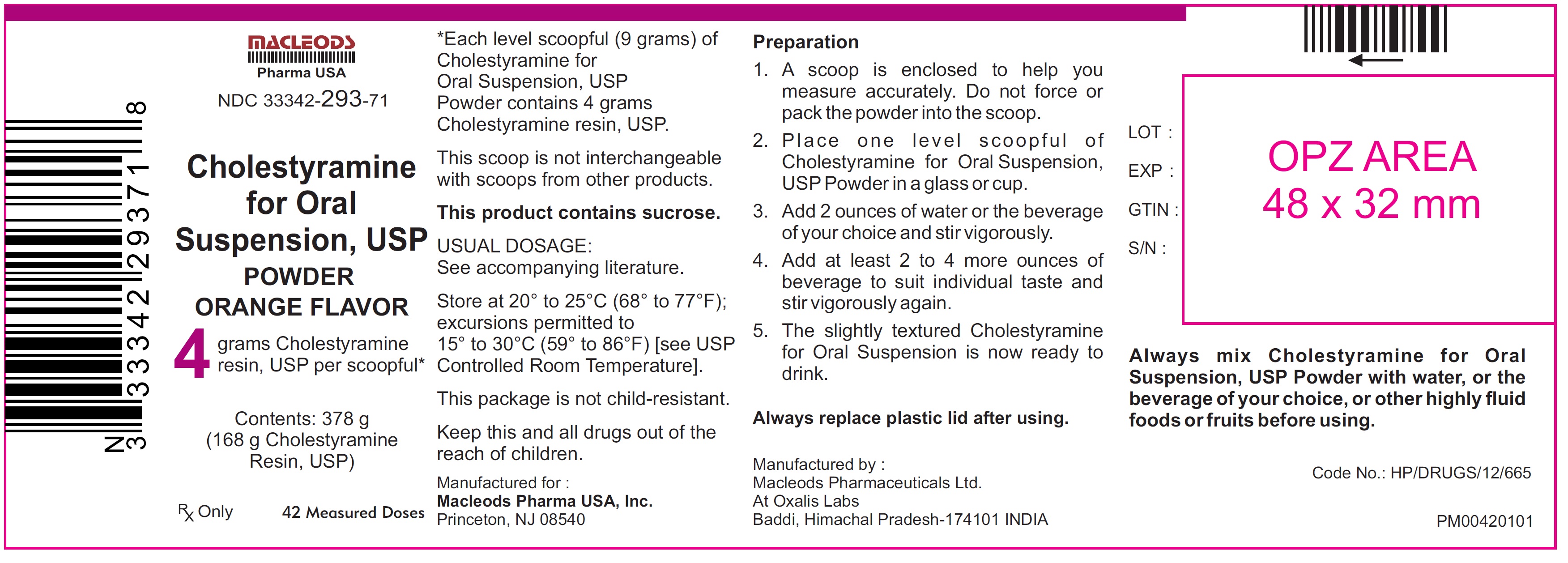 Cholestyramine by is a Prescription medication manufactured, distributed, or labeled by Macleods Pharmaceuticals Limited. Drug facts, warnings, and ingredients follow.