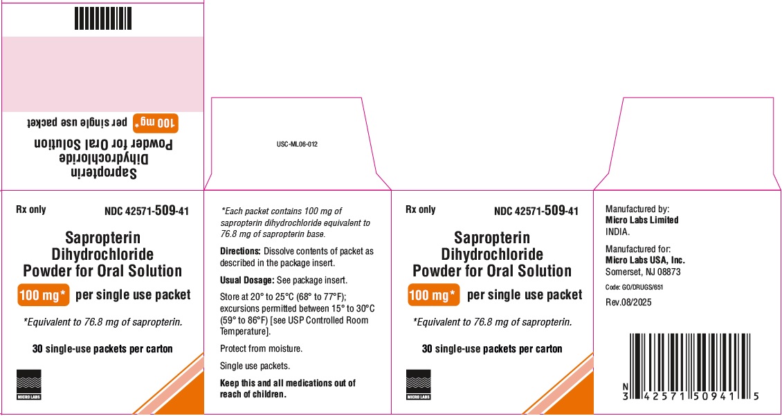 Active ingredient: sapropterin dihydrochloride. Inactive ingredients:ascorbic acid, mannitol, potassium citrate, and sucralose. For more information, call 1-855-839-8195. The brands listed are the trademarks of their respective owners and are not trademarks of the Micro Labs Limited. Manufactured by: Micro Labs Limited INDIA. Manufactured for: Micro Labs USA, Inc. Somerset, NJ 08873 Rev. 09/2024 |
