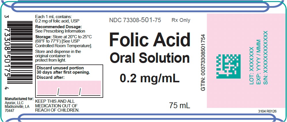 FOLIC ACID Oral Solution, 0.2 mg/mL is a yellow solution with a mixed berry flavor supplied in amber PET bottles with a child-resistant closure containing 75 mL of oral solution (NDC: 69499-501-75).