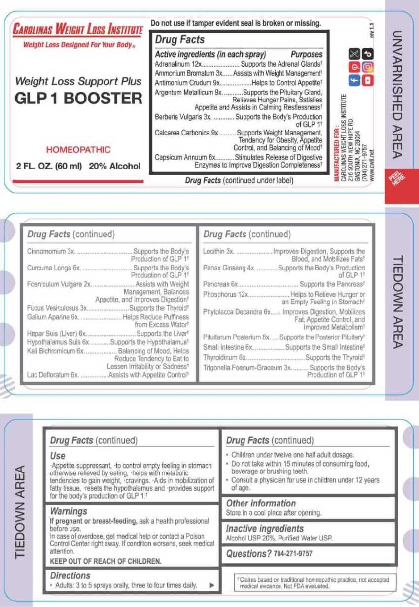 Weight Loss support Plus - GLP 1 Booster by is a Homeopathic medication manufactured, distributed, or labeled by Carolinas Weight Loss Institute. Drug facts, warnings, and ingredients follow.