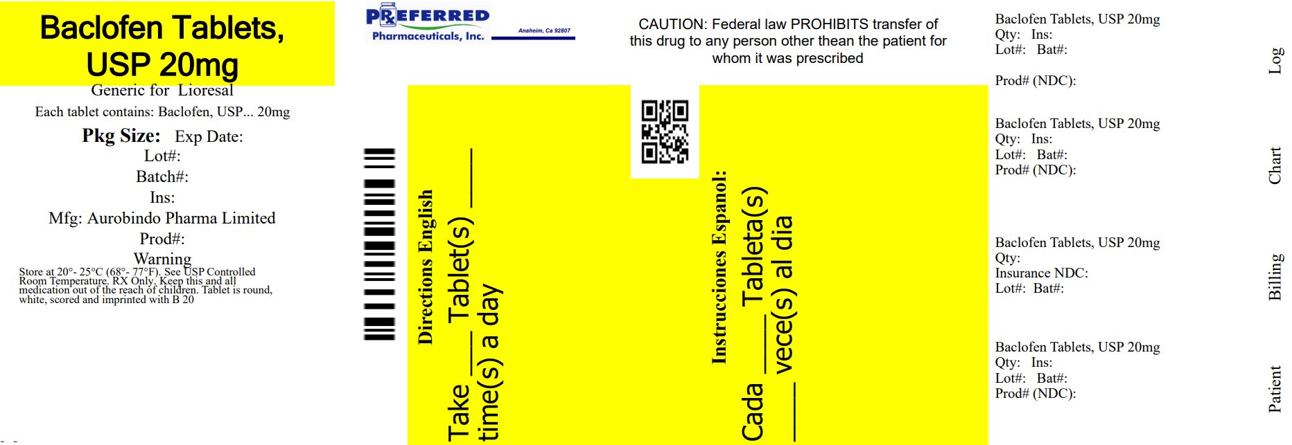 BACLOFEN by is a Prescription medication manufactured, distributed, or labeled by Preferred Pharmaceuticals Inc.. Drug facts, warnings, and ingredients follow.