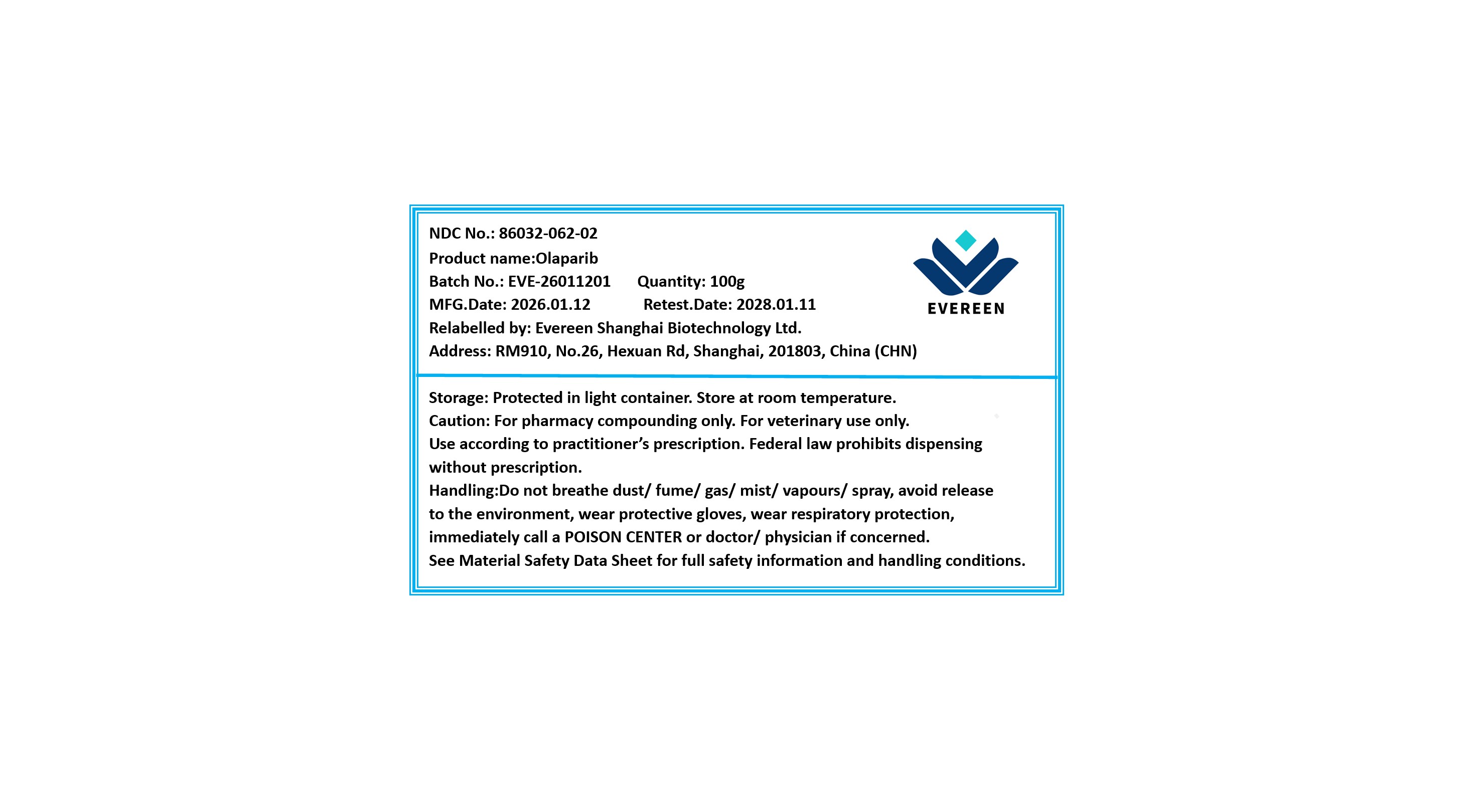 | Evereen Shanghai Biotechnology Ltd. | 711547777 | relabel | |