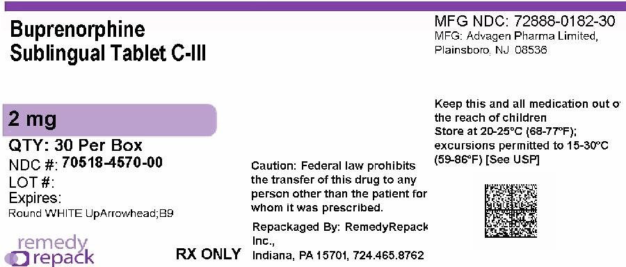 General information about the safe and effective use of Buprenorphine Sublingual Tablets. Medicines are sometimes prescribed for purposes other than those listed in a Medication Guide. Do not take Buprenorphine Sublingual Tablets for a condition for which it was not prescribed. Do not give Buprenorphine Sublingual Tablets to other people, even if they have the same symptoms you have. It may harm them, and it is against the law. What are the ingredients in Buprenorphine Sublingual Tablets? Active ingredient:Buprenorphine hydrochloride, USP Inactive ingredients:Lactose monohydrate, mannitol, corn starch, citric acid anhydrous, sodium citrate dihydrate and magnesium stearate. You can ask your doctor or pharmacist for information that is written for healthcare professionals. For more information, call Advagen Pharma Ltd, at 866-488-0312. |