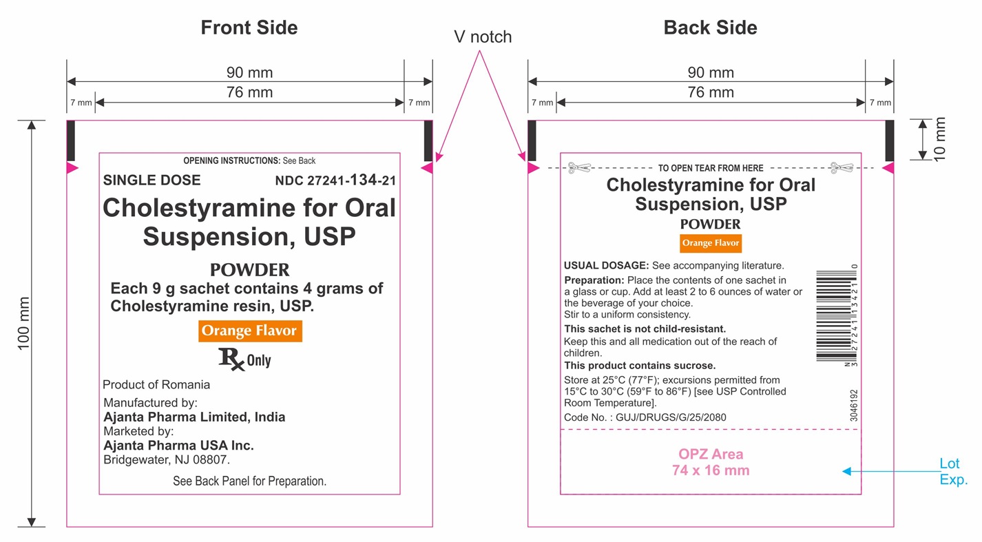 Cholestyramine for oral suspension, USP orange flavor is available in cartons of sixty 9 gram sachets and in HDPE bottles containing 378 grams. Nine grams of cholestyramine for oral suspension, USP contain 4 grams of anhydrous cholestyramine resin.