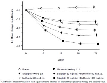 Metformin HCl 1,000 mg twice daily* | Sitagliptin