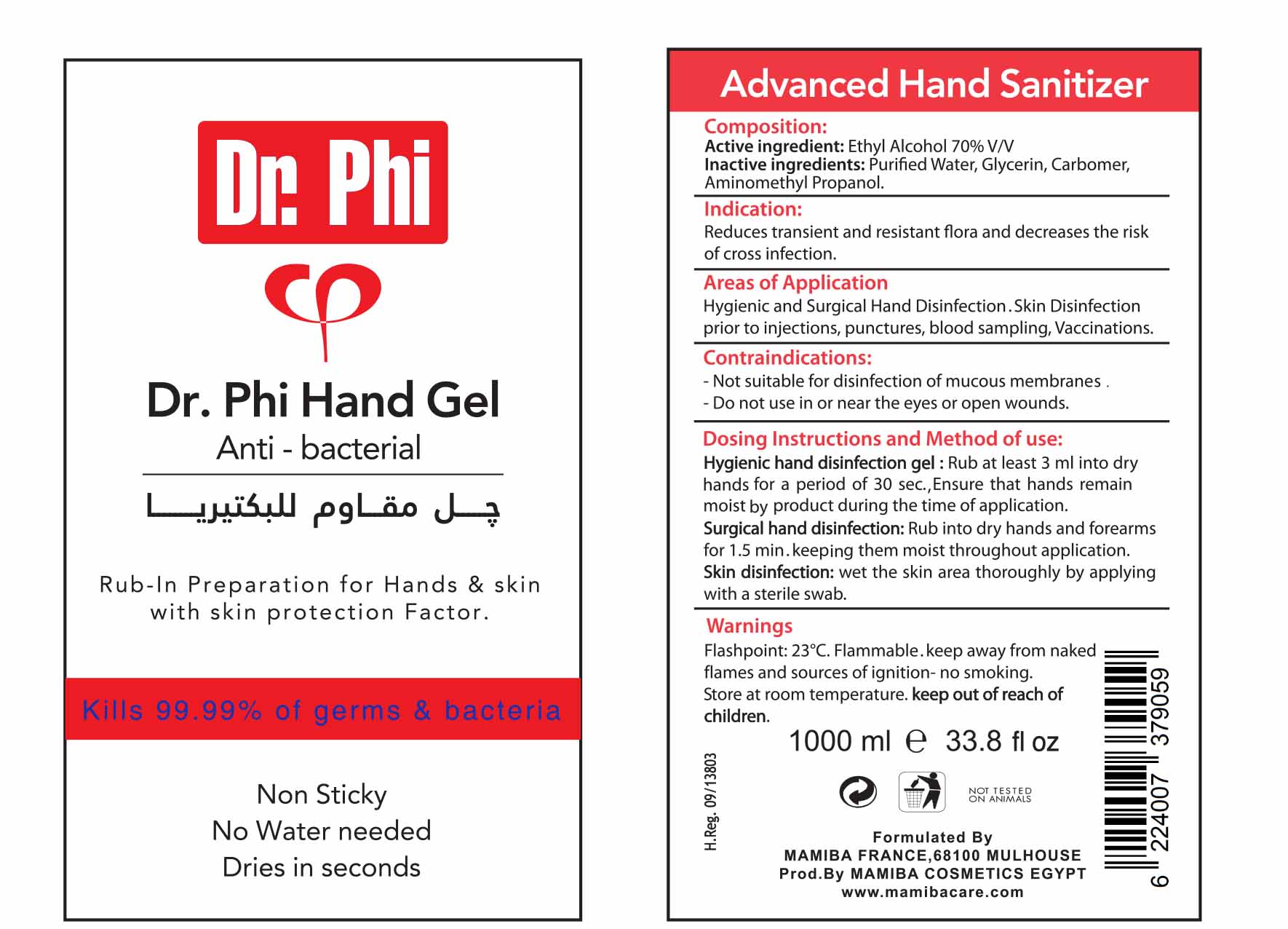 Dr.Phi Advanced Hand sanitizer by is a Otc medication manufactured, distributed, or labeled by MAMIBA. Drug facts, warnings, and ingredients follow.