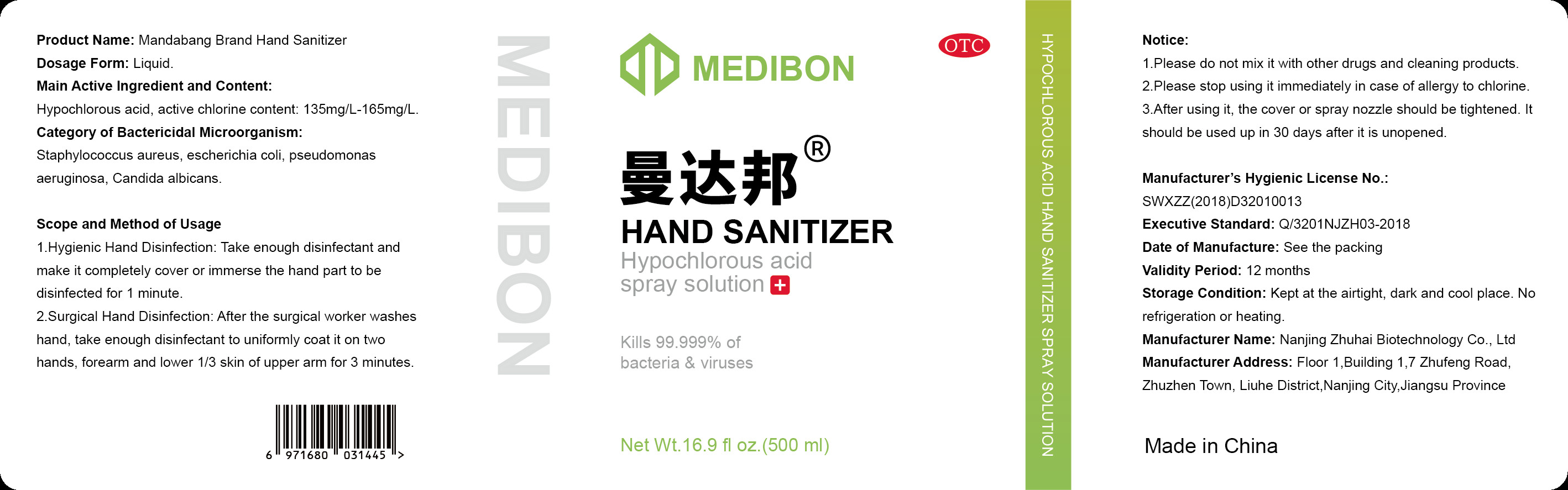 Mandabang Brand Hand Sanitizer by is a Otc medication manufactured, distributed, or labeled by Nanjing Zhuhai Biotechnology Co., Ltd. Drug facts, warnings, and ingredients follow.